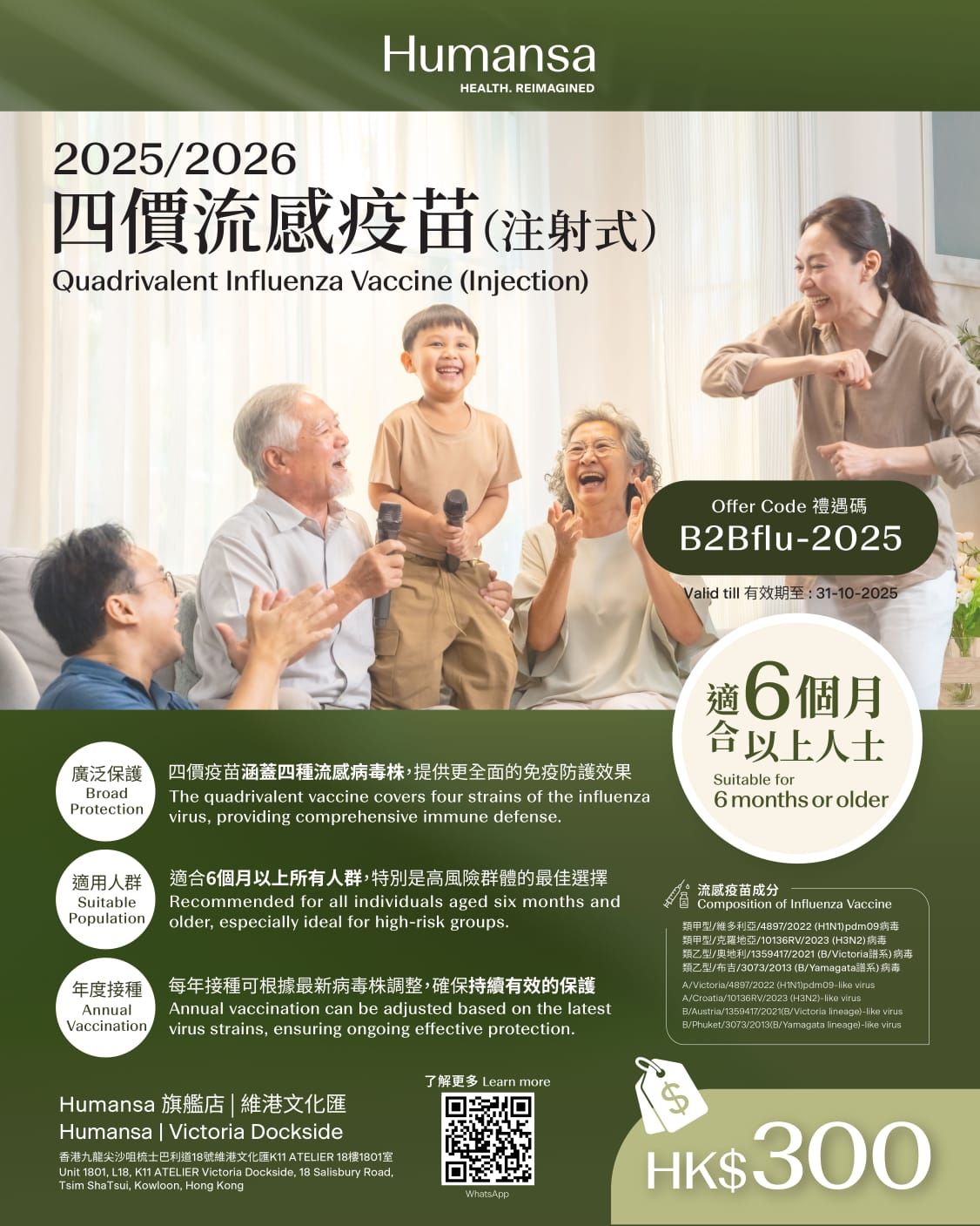Get Your Influenza Vaccine for $300 (Original Price: $480)!